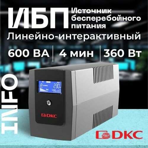 ИБП DKC Линейно-интерактивный ДКС серии Info PDU, 600 ВА/360 Вт, 1/1,8xSchuko, LCD, 1x7Aч