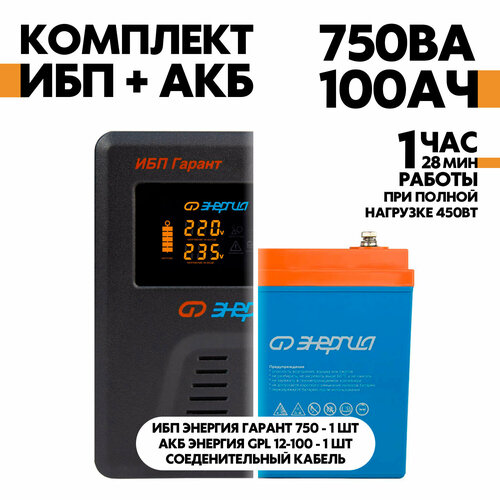 Интерактивный ИБП Энергия Гарант 750 в комплекте с аккумулятором Энергия АКБ 12-75 450 Вт/75 А*Ч