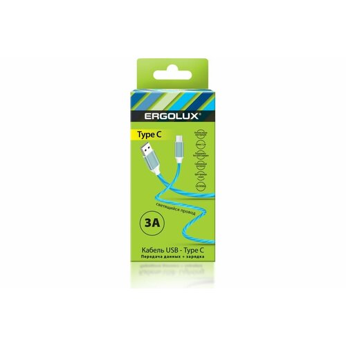 Кабель USB-Type C Ergolux Elx-cdc02-c06 (3а, 1,2м, led (синий), зарядка+передача данных, коробка) 15305