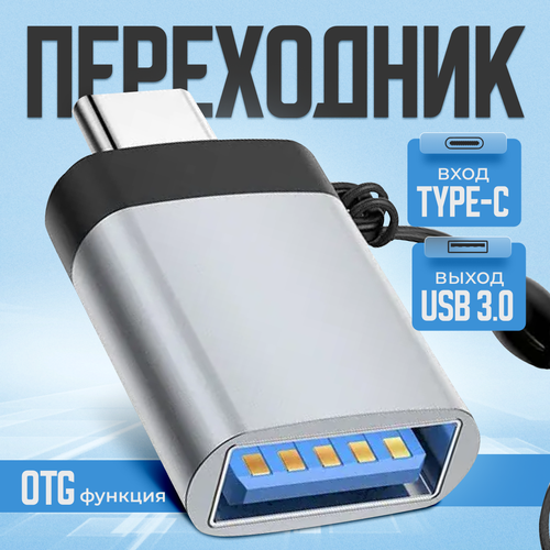Переходник с Type C на USB 3.0 / Адаптер OTG тайп си / Для телефонов, планшетов, смартфонов и компьютеров / Алюминий
