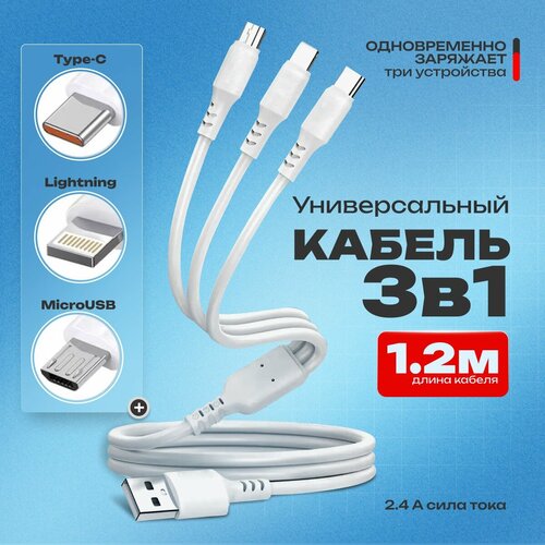 Кабель для зарядки AlisaFox, 3 в 1, USB-Type-C/Lightning/microUSB, 1,2м