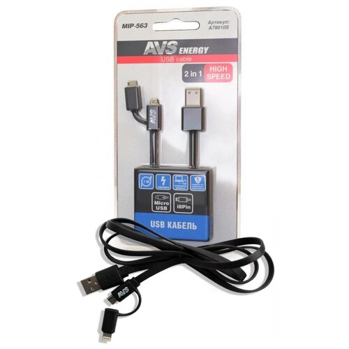 Кабель (AVS MIP-563 для iphone 5/6/7 + micro USB (1м) (блистер))