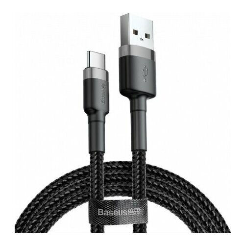 Кабель USB BASEUS Cafule, USB - Type-C, 3A, 0.5 м, серый+черный