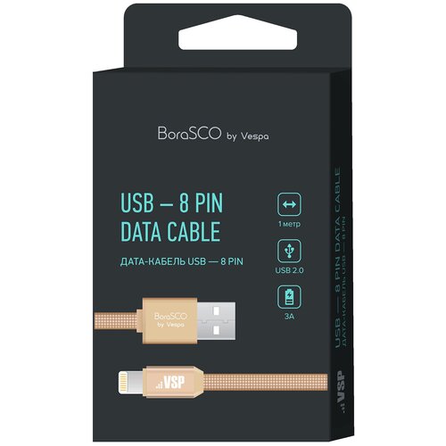 Кабель BORASCO USB - 8 pin, 2А, 1м