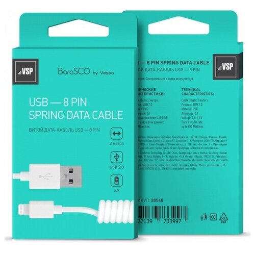 Кабель BORASCO (VSP) USB – Lightning, витой, 2м