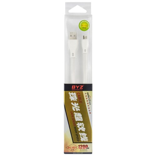 Кабель BYZ BL-641A, microUSB - USB, 1 м, ПВХ, белый.