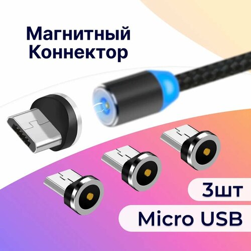 Комплект 3 шт. Магнитный коннектор Micro USB для кабеля / Наконечник Микро ЮСБ для зарядки / Насадка на провод