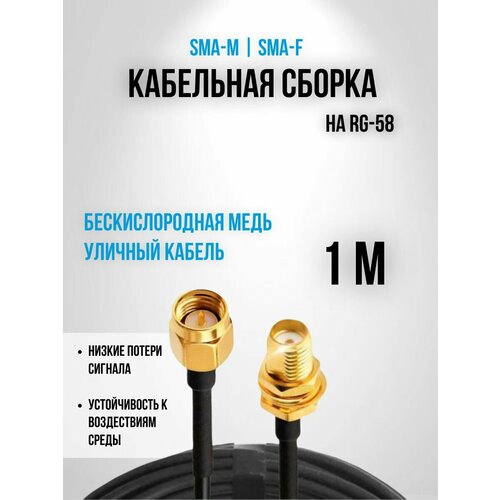 Кабельная сборка RG-58U SMA-male - SMA-female, 1 метр удлинитель мама папа кабель 50 ом с разъёмы sma-female и sma-male