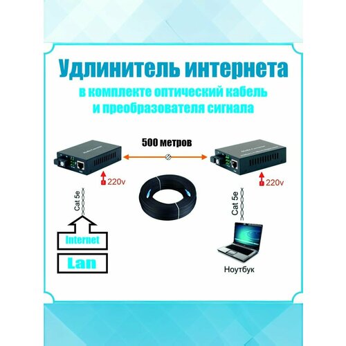 Удлинитель интернета (в комплекте оптический кабель и преобразователя сигнала) 100м
