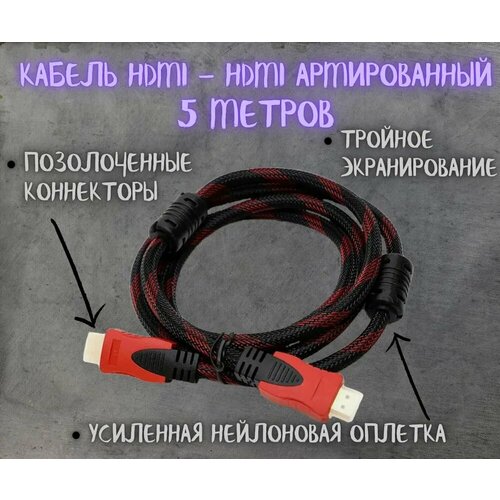 Кабель HDMI - HDMI армированный с нейлоновой оплеткой, экранированием и позолоченными коннекторами (5 метров)