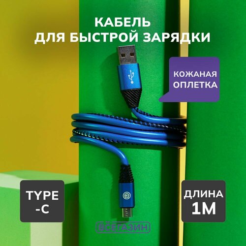 Кабель для зарядки Премиум Type-C всёгазин, 1м, 2А, кожаная оплётка