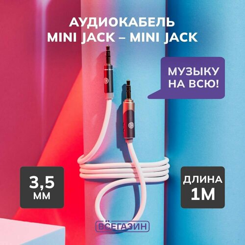 Кабель 3.5мм mini Jack-mini Jack всёгазин, 1м, оплетка TPE, поворотный штекер, пластик