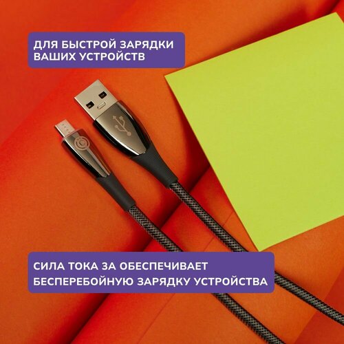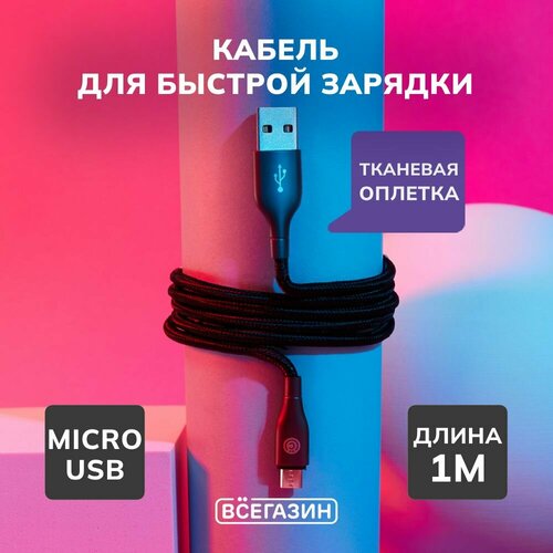 Кабель для зарядки Керамика Micro USB всёгазин, 1м, 3А, Быстрая зарядка QC3.0, тканевая оплётка