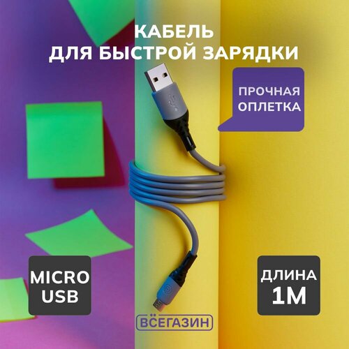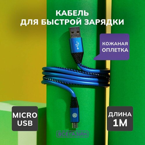 Кабель для зарядки Премиум Micro USB всёгазин, 1м, 2А, кожаная оплётка