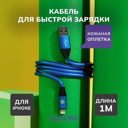 Кабель для зарядки Премиум iP всёгази, 1м, 2А, кожаная оплётка