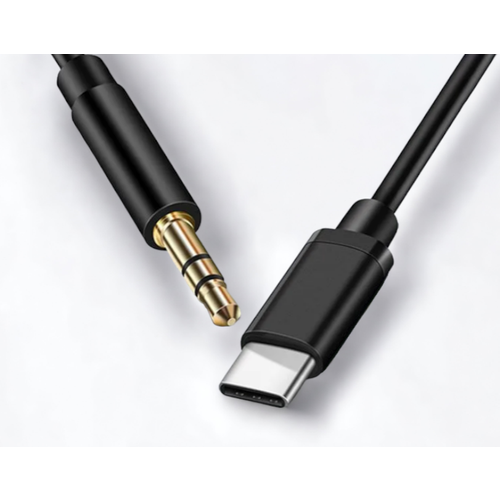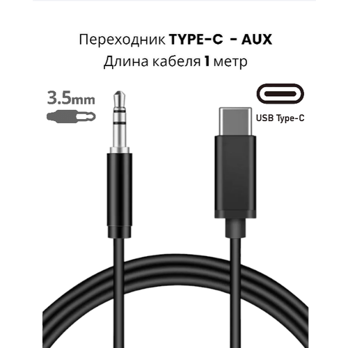Кабель переходник с type-c на aux (jack 3.5 mm) / Провод для телефона android/15 iPhone/ Длина 1 м/ Черный