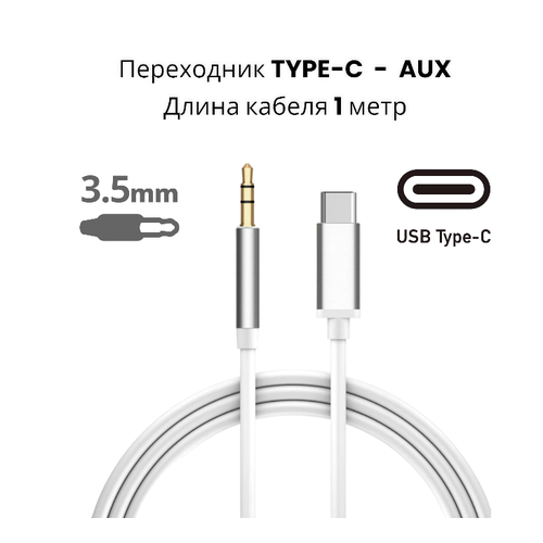 Кабель переходник с type-c на aux (jack 3.5 mm) / Провод для телефона android/15 iPhone/ Длина 1 м/ Белый