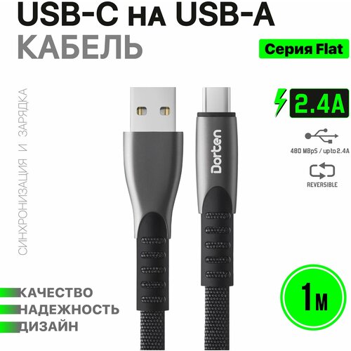 Кабель Dorten USB-C to USB cable: Flat Series 1 meter (Black/Черный)
