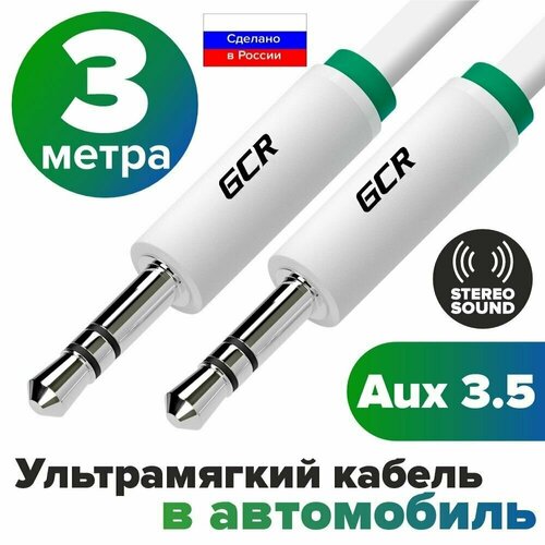 GCR Кабель 3.0m аудио jack 3,5mm/jack 3,5mm белый, зеленая окантовка, ультрагибкий, 28 AWG, M/M, Premium, экран, стерео