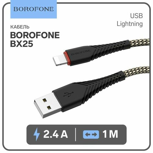 Кабель Borofone BX25, Lightning - USB, 2.4 А, 1 м, нейлоновая оплётка, чёрный