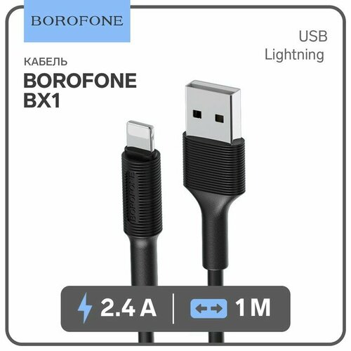 Кабель Borofone BX1, Lightning - USB, 2.4 А, 1 м, PVC оплётка, чёрный