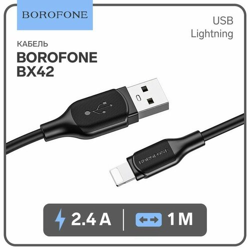 Кабель Borofone BX42, Lightning - USB, 2.4 А, 1 м, TPE оплётка, чёрный