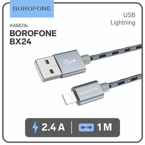 Кабель Borofone BX24, Lightning - USB, 2.4 А, 1 м, нейлоновая оплётка