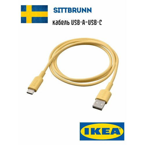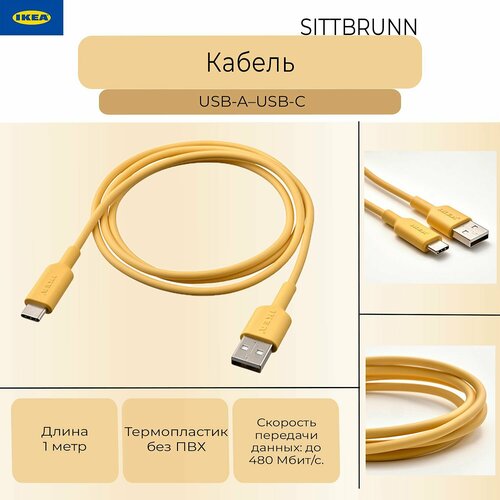 Кабель IKEA SITTBRUNN USB-А USB-С, 1 м,. Провод икеа желтый