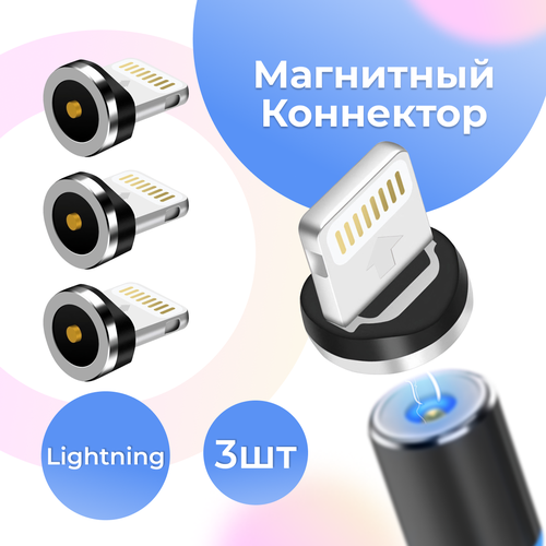 Комплект из 3 шт. Магнитный коннектор Lightning для магнитного кабеля / Наконечник Лайтнинг для зарядки Эпл Айфон, Аирподс, Айпад / Черный