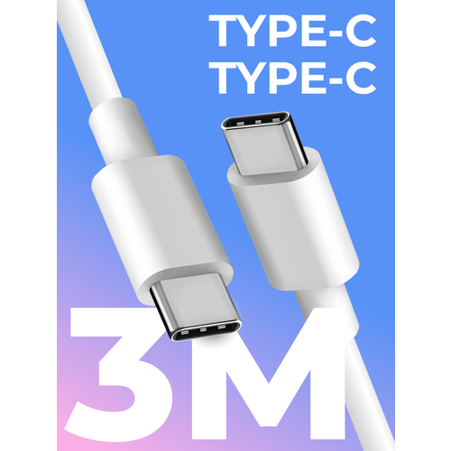 Кабель Type-C / Type-C для зарядки мобильных устройств / 3 метра / Провод для телефона, планшета, наушников / Шнур с разъемом Тайп Си-Тайп Си / Белый