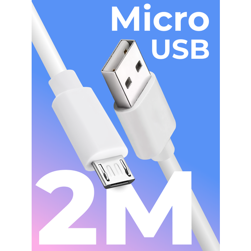 Кабель Micro USB / USB для зарядки мобильных устройств / 2 метра / Провод телефона, планшета, наушников с разъемом Микро ЮСБ / Шнур для зарядки, Белый