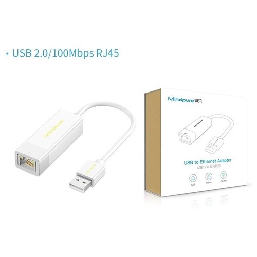 Переходник / адаптер USB 2.0 to RJ45 (Ethernet) 100Mbps Mindpure UR001 Белый