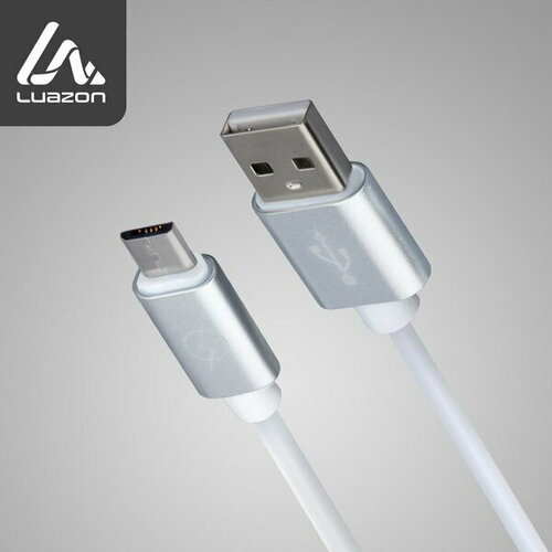 Кабель LuazON, microUSB - USB, 1 А, 1 м, оплётка металл, цвет: серебро