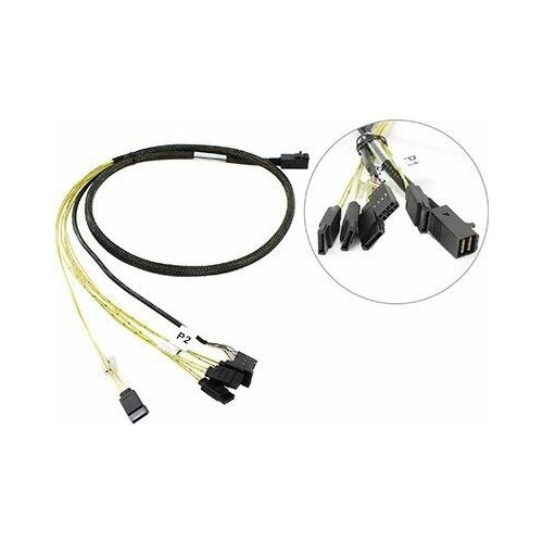 Кабель LSI CBL-SFF8643-SATASB-10M, SFF-8643 (mini SAS HD) - 4xSATA+SB, 1м, (LSI00411/L5-00221-00)