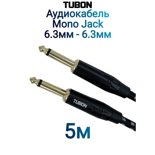 Кабель TUBON Моно 6.3 мм jack (M) - 6.3 мм jack (M) Моно OD6.0 Тканевая оплетка J005 5м