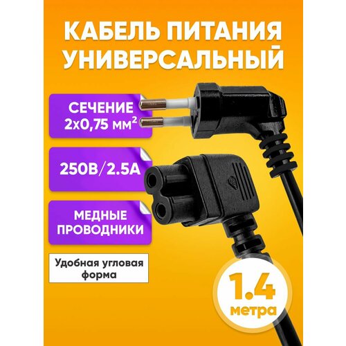 Кабель питания универсальный угловой 2pin, шнур питания угловой / Европейская вилка для xbox ps