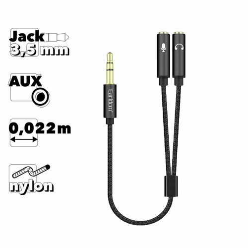 Аудиокабель - разветвитель Earldom ET-AUX202 3.5 мм 0.22м нейлон
