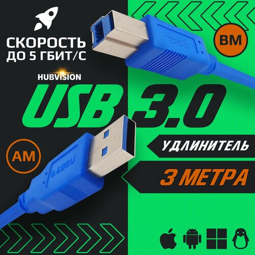 Кабель USB 3.0 для принтера, МФУ, сканера (AM-BM / папа-папа) 3 метра