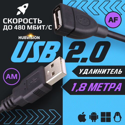 Кабель удлинитель USB 2.0 (AM - AF / папа - мама) 1,8 метра