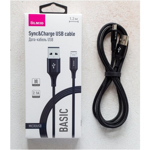 Кабель BASIC, USB 2.0 - microUSB 1,2 м 2.1 А черный Olmio *ГПН PARTNER 041643 | цена за 1 шт