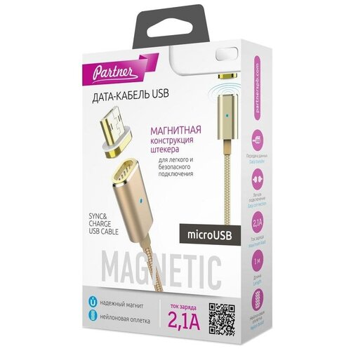 Магнитный кабель USB 2.0 - microUSB, 1.2м, Partner