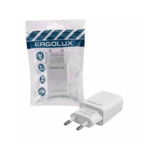 Адаптер сетевой 1USB 100-220В 5-9В/2А пакет бел. Ergolux 15203