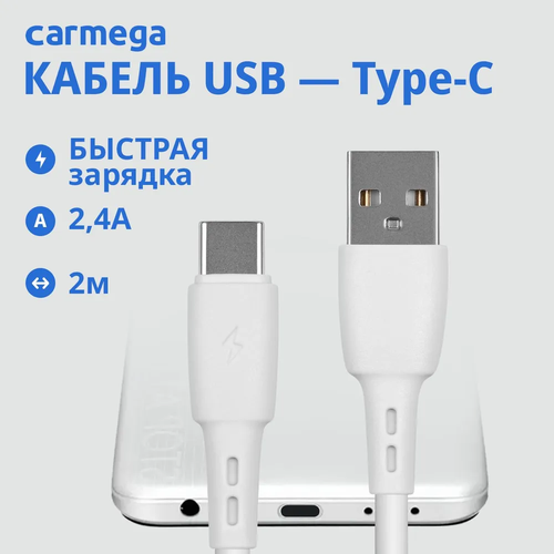 Кабель для зарядки смартфона Carmega TypeC 2.0m white быстрая зарядка для телефона тайп с