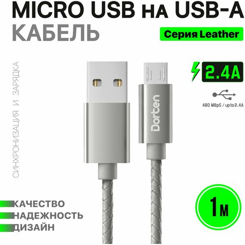 Кабель USB - micro USB Dorten 1м Leather Series темно-серый