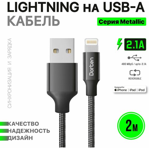 Кабель USB Dorten Lightning to USB Cable Metallic Series 2 м Black