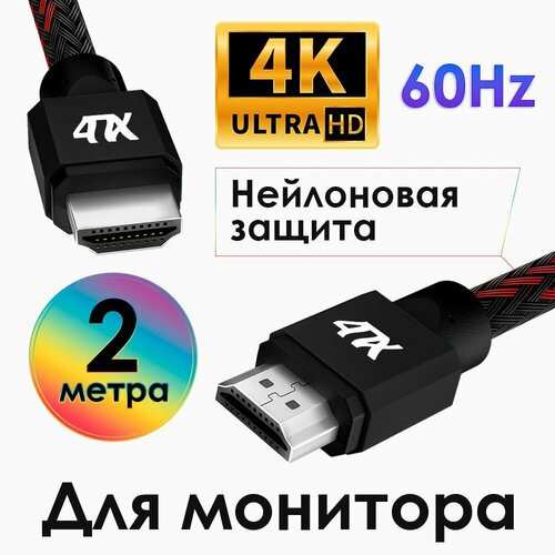 Кабель HDMI 2.0 кабель 2 метра 4ПХ для TV PS4 Xbox One Ultra HD 4K 60Hz 3D ARC провод HDMI черно-красный нейлон