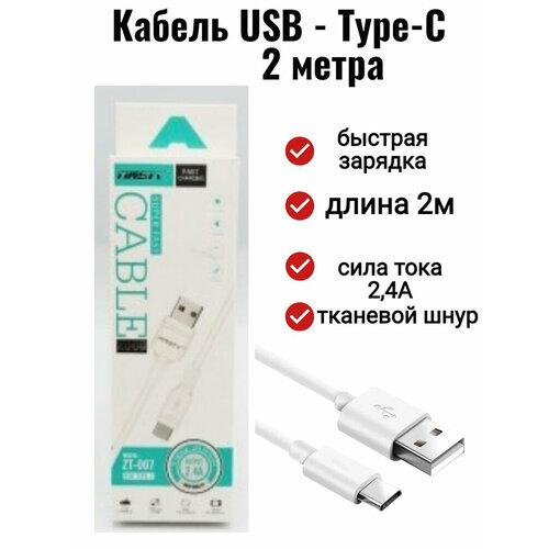 Кабель usb type-с/для быстрой зарядки/для быстрой передачи данных/2 метра