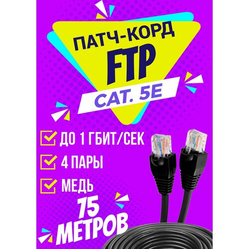 Патч корд уличный FTP 75 метров, категории 5е, RJ45 интернет кабель LAN / сетевой / Ethernet / FTP патч-корд