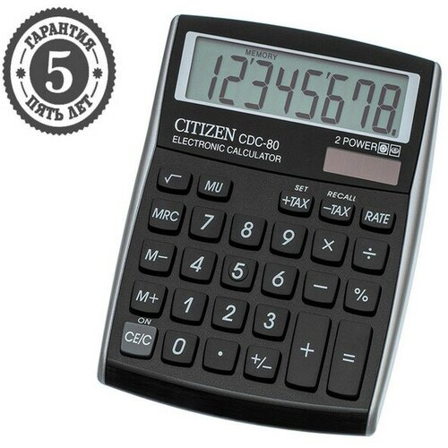 Калькулятор настольный Citizen "CDC-80BKWB", 8-разрядный, 109 х 135 х 25 мм, двойное питание