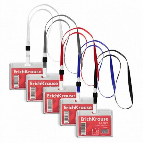 Бейдж горизонтальный 86х54мм ErichKrause слайдер, текст. лента, цв микс